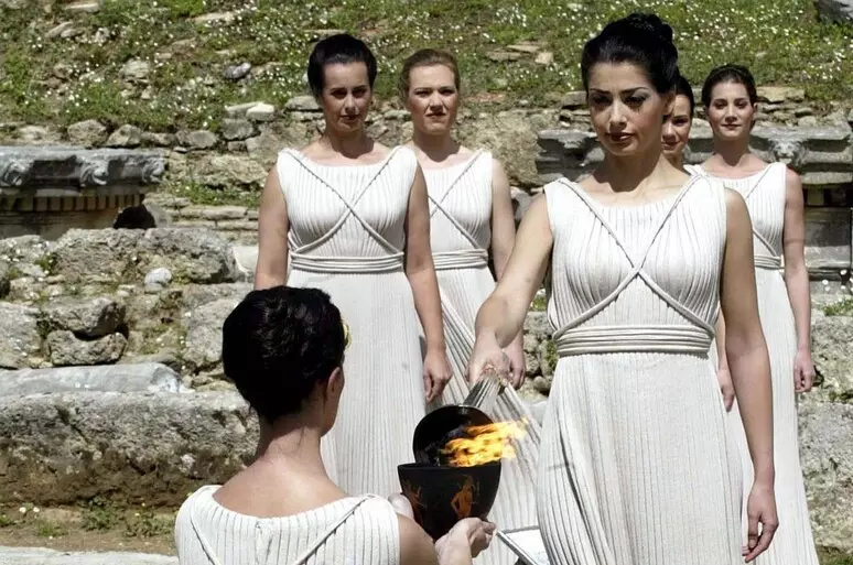 La 'grande sacerdotessa', interpretata dall'attrice ellenica Mary Mina, ha acceso la torcia con la fiamma...